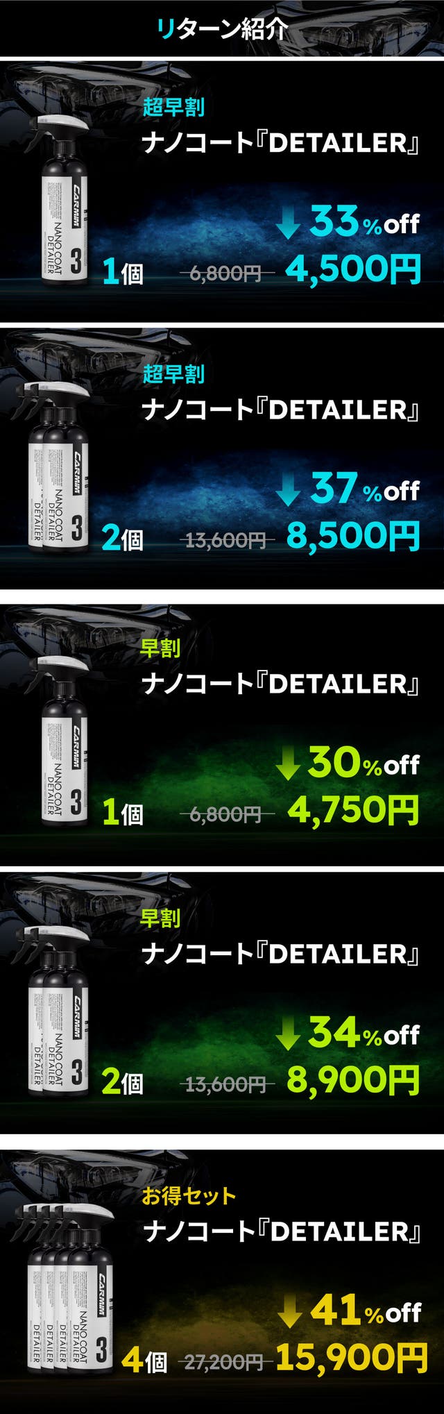 【超早割】ナノ技術でピカピカ艶・高撥水力のナノコート『DETAILER』×1