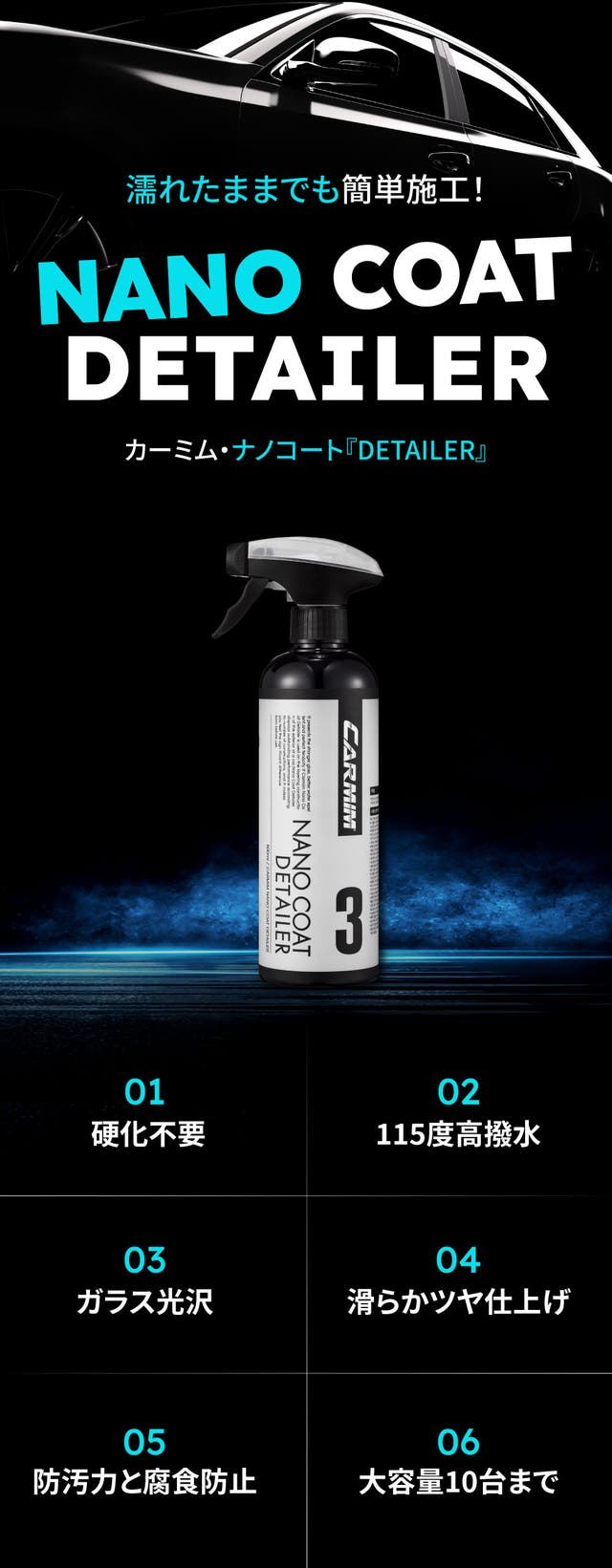カーミムのDETAILERは独自のナノ技術で即効コーティングでします。