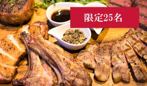 ・メインの「熟成牛ランイチとラムチョップ炭火焼き盛合せ」を「熟成肉部位食べ比べ3種(定価:6,200円)」にアップグレードできる