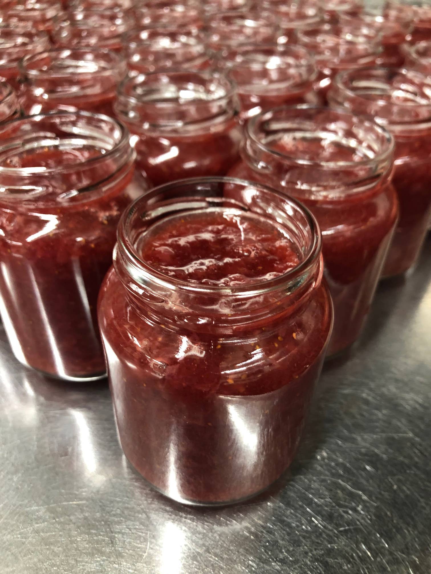 毎日、朝からジャムを作っています。今日は、京都産いちごのジャム、あまおういちごジャム、プルーンジャム、ブラムリー(青りんご)ジャム、しおやももジャム、栗ジャムを作っていました!京都産のいちごジャムは次からちょっとレモンの量を減らそうかなと思っています。いちごジャムもたくさんの種類を作っているのですが、いちごの種類とその年の作柄でちょっとづつバランスを変えながら作っています。でも、よく炊いてるときはそう思うのですが、次に炊くまでに1か月ぐらい間があくこともあるので、そうすると忘れてしまって、前回と同じように作ってしまって、次からこうしようとまた思うこともあるんですよね。