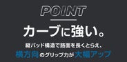 - カーブでも横滑りしにくい! 独自のトレッドパターンが横方向の力をしっかり受け止め、安定した走行