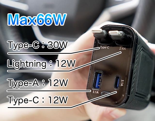 - 【最大66W】急速充電に対応し、外出先やドライブ中でもスマホを短時間で効率的に満充電できる。