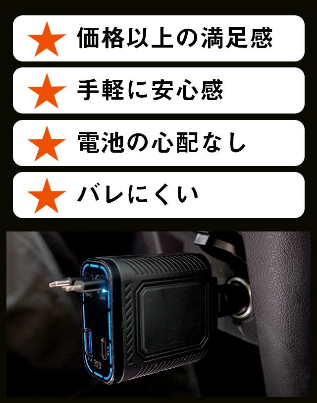 ・車のシガーソケットに差し込むだけで利用できる手軽さ