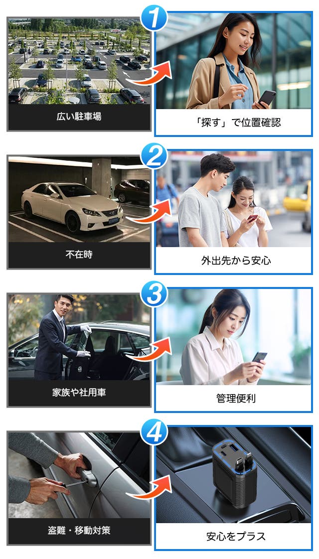 近年、国内で多くのドライバーが「車の現在位置をすぐに把握できる安心感」を求めています。また、大型ショッピングモールやイベント会場など、駐車スペースが広大な場所では「自分の車がどこにあるか分からなくなる」という声も少なくありません。そこで当社は、充電機能と位置情報管理を兼ね備えた「カーチャージャー(タグ型)」 に着目しました。