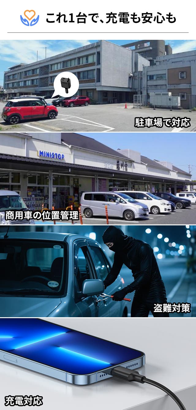 近年増加する盗難や駐車場所の紛失といった車両管理の課題に注目し、日常の充電機能と位置追跡を一体化した「カーチャージャー」を独自に開発しました。この製品は、車のシガーソケットに挿すだけで充電と位置情報の取得が同時に可能になり、ユーザーはスマートフォンからいつでも車両の場所を確認できます。利便性と安心感を両立させた本製品は、同社の先端技術と実用性を融合させた代表的な成果の一つです。