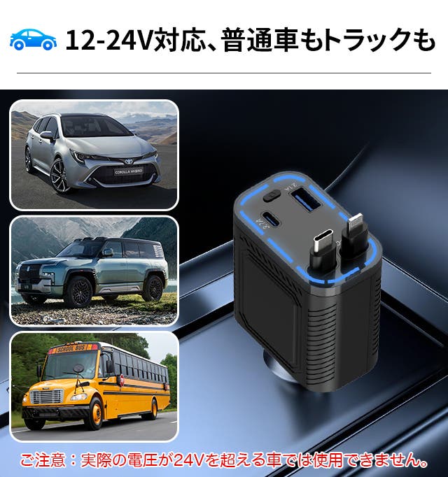 - 車のシガーソケットに差し込むだけで安定して給電でき、走行中も安心して使えます。