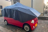 雨ざらしや霜、積雪から愛車を守るために、市販のカーテントを使用しました。実際に設置してみると、窓ガラスは雨汚れで汚く、霜も付き改善がされませんでした。