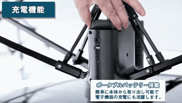 バッテリーを取り出して付属のシガーソケット用のACアダプターやスマホからでも充電できるので、運転中に充電しておけば使いたい時にすぐに使えます。