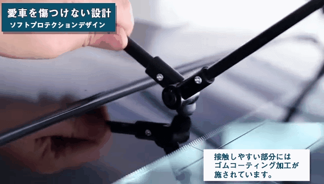 もちろん吸盤はゴム製で、各ジョイントにもゴムカバーを付けているので愛車を傷つけないように配慮しています。
