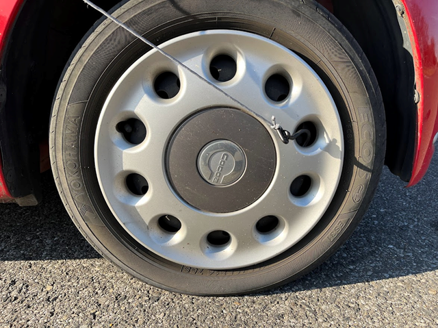 ④防風ストラップを車のドアノブ、サイドミラー、ホイールに取り付ければ完成です(計12本)。