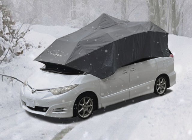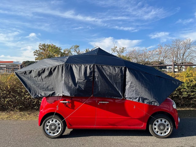 - 車を丸ごとカバーできる大型のカーテント。日差し、積雪、花粉、落ち葉の害から愛車を守る。