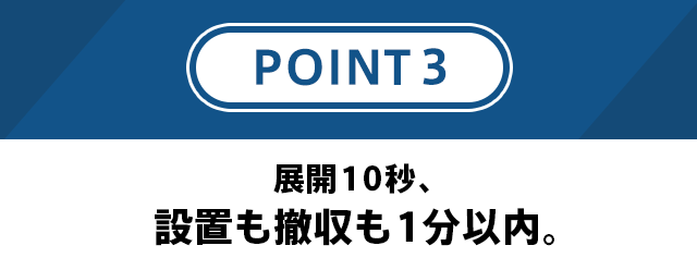 - テントの展開も収納も全自動。セッティングや撤収が短時間で簡単にできる。