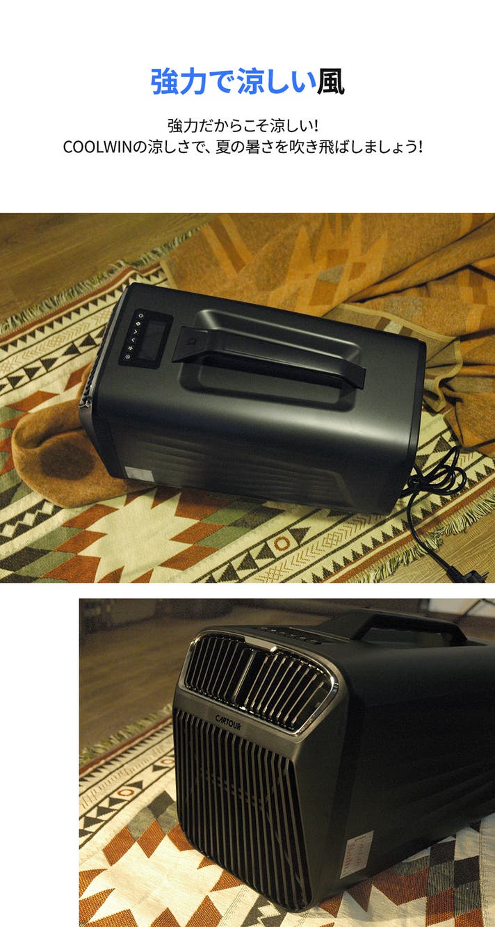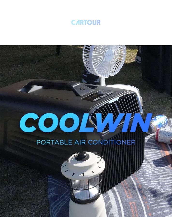 ポータブルエアコン「COOLWIN」は、CARTOURメーカーの技術が集結した「持ち運べるエアコン」です。室外機無し、固定設置型ではなく、一体型の誰でも手軽に持ち運べるエアコンです。