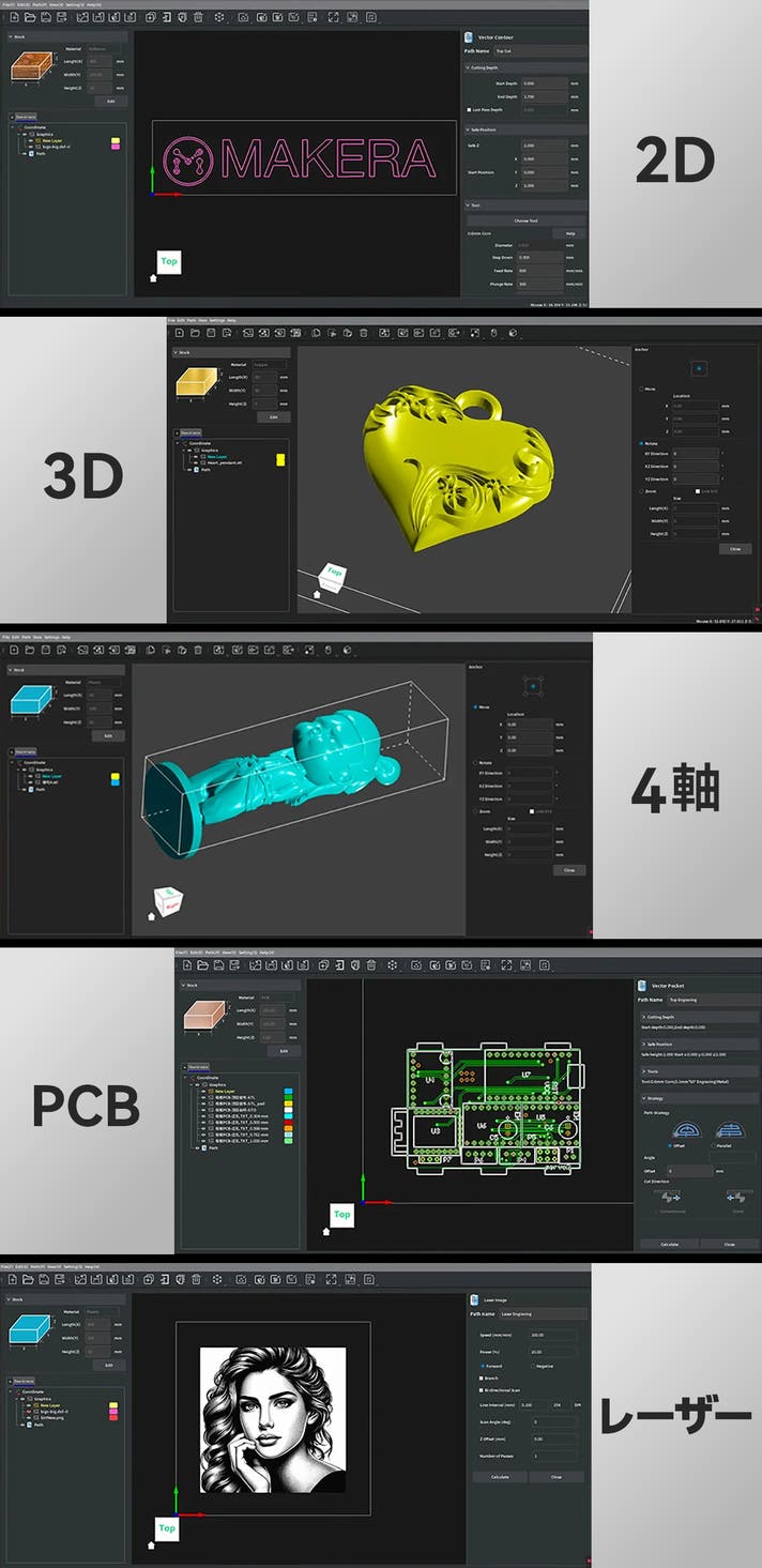 初心者向けに、自社製のCAMソフト「Makera CAM」とマシン制御ソフト「Makera Controller」をリリース済み。