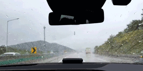 雨天時も、前がよ〜く見えます。梅雨の時期に大活躍!ワイパーなしで、雨天時も運転OK!