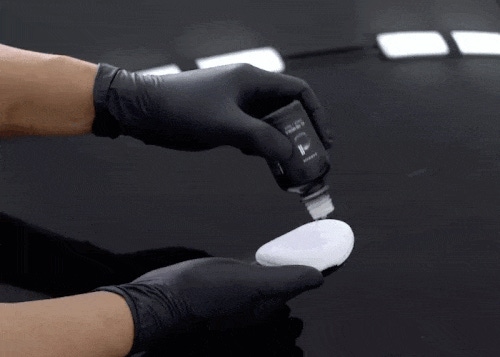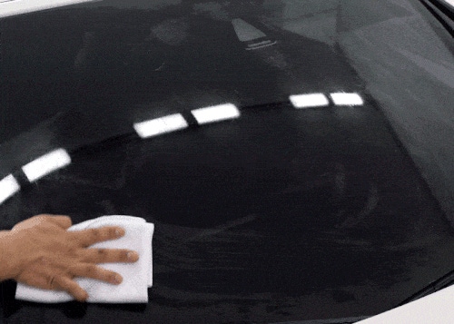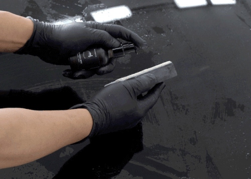 3. 油膜を除去した後、水気のないきれいなガラスにコーティングパフを使用し、レインフォース(コーティング剤)を均等に伸ばします。