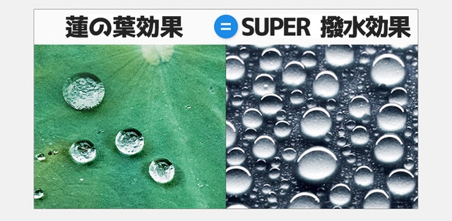 滑らかに見える蓮の葉の表面を顕微鏡でよく見ると、非常に微細な突起で構成されていますが、これらの突起が丸い形の水滴を形成させます。このような原理で表面張力を最大限に発揮するレインフォースは、ガラスに水が触れた瞬間、その場に留まらずはじき出す撥水効果により、きれいな視界を確保できるようサポートしてくれます。