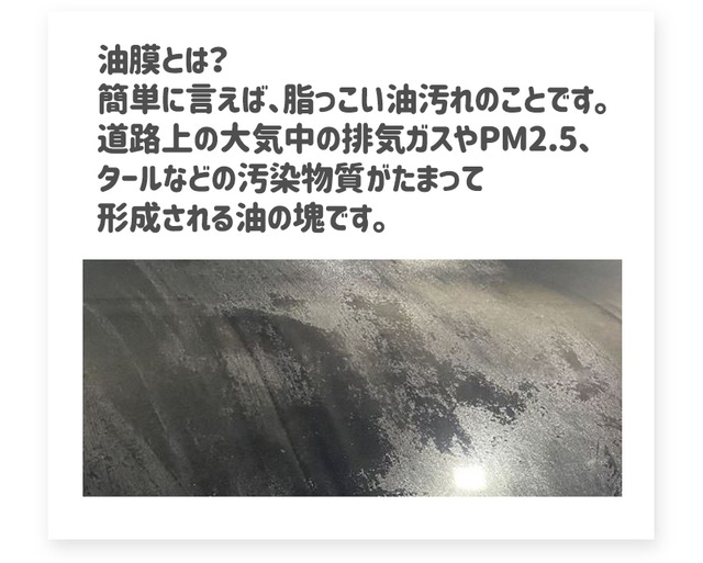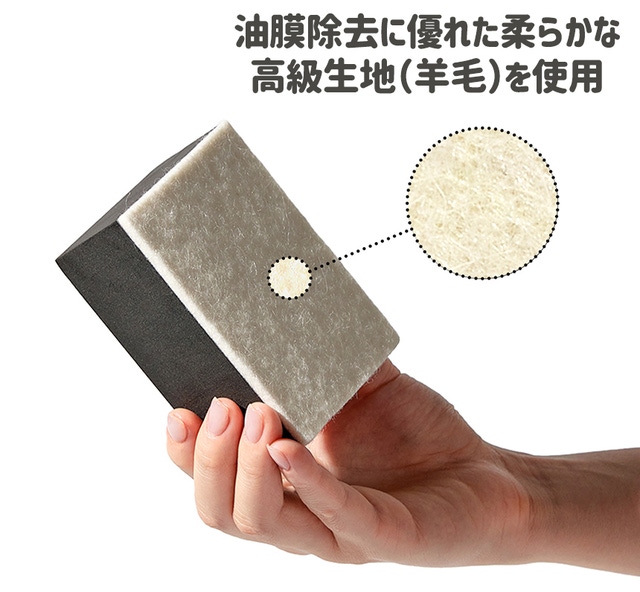 小さな力で簡単に油膜を取り除くことができます。小さなパッドで力を入れてこする必要がなく、軽くこするだけで広い面積の油膜を除去することができます。