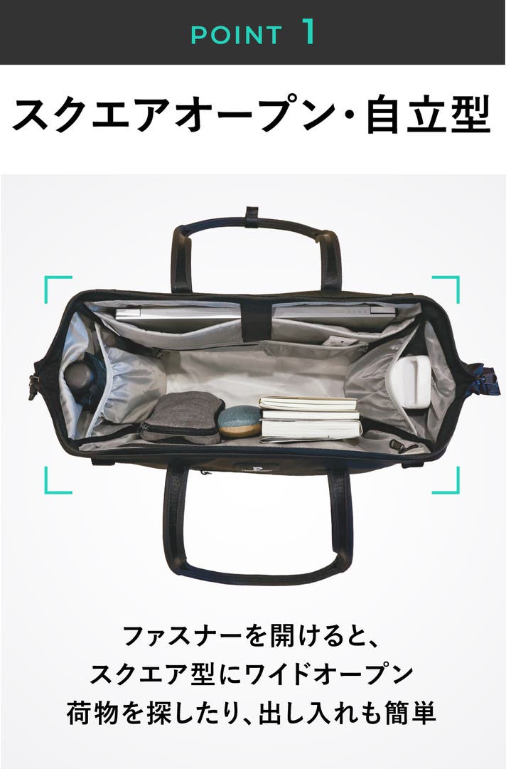 - スクエア型にワイド開口!出し入れスムーズで大容量の自立型。