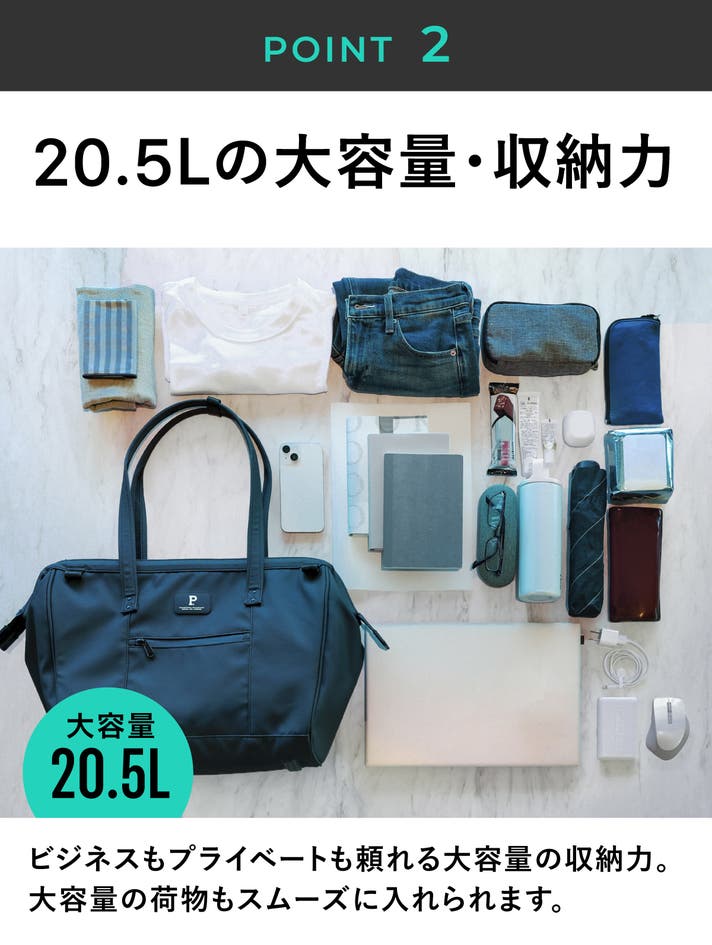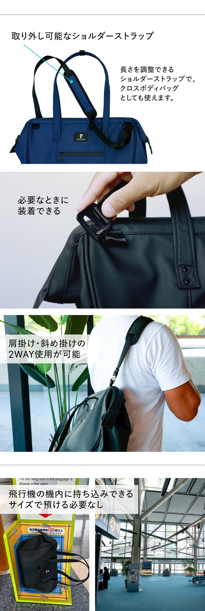 - 斜め掛けにもできる2WAYトート。スーツケースに固定可能で移動が快適。