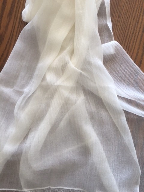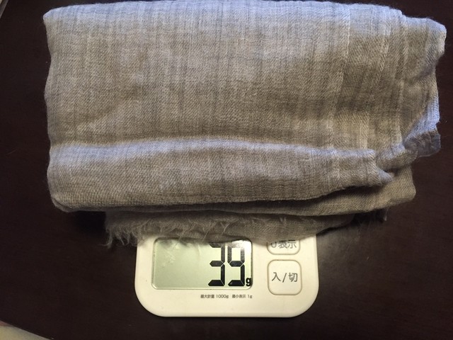 200番手と言う超極細糸を紡ぎ生地にするときに双糸(2本で1本の糸に拠る)で織り上げました。出来上がった200㎝×70㎝のストールは、