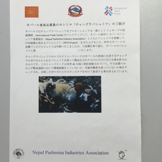 ネパール政府・ネパールパシュミナ産業協会・ジュネーブ インターナショナルトレードセンターの共同事業です。