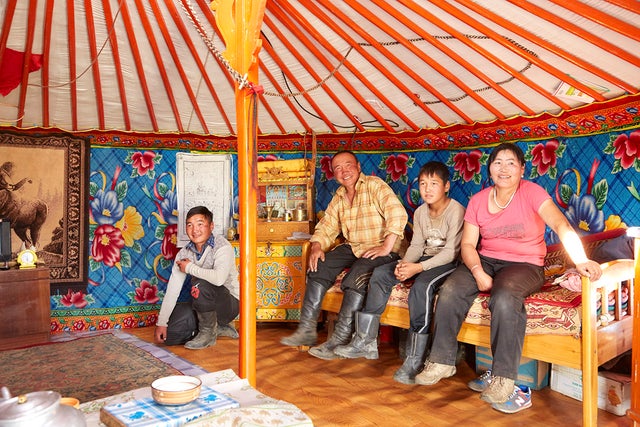 ゲルの中でくつろぐ遊牧民のみなさん