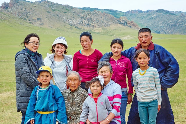 生産スタッフと遊牧民たちとの記念ショット