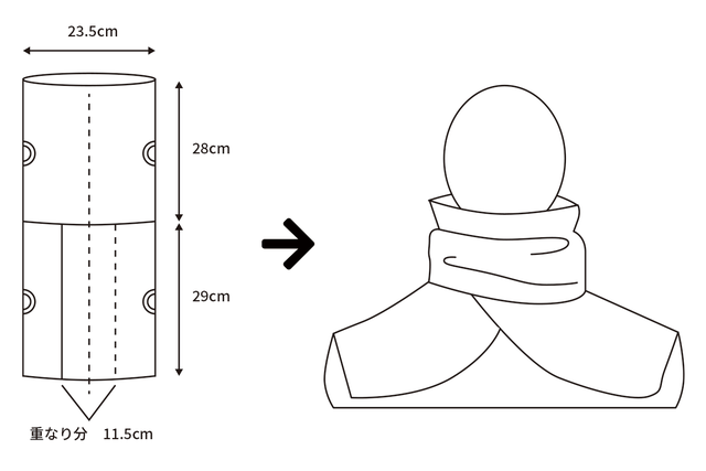 - スヌードとケープを組み合わせたような、コンパクトなのに肩まで包み込む形状
