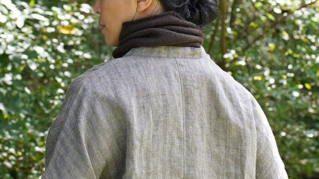 後ろから見るとストールを巻いているように見えます。