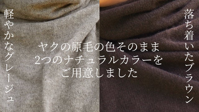 モンゴルの遊牧民たちが自然な方法で集めた高品質のヤクの原毛。その中でもより温かい"うぶ毛"のみを使用し、カシミヤより温かく、驚くほど軽い、ネック&ショルダーウォーマーが完成しました。