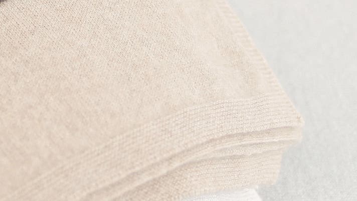 A. 一般的なウールと異なり、無染色カシミヤは繊維が極細で、非常にやわらかいため、肌が弱い方にもおすすめです。