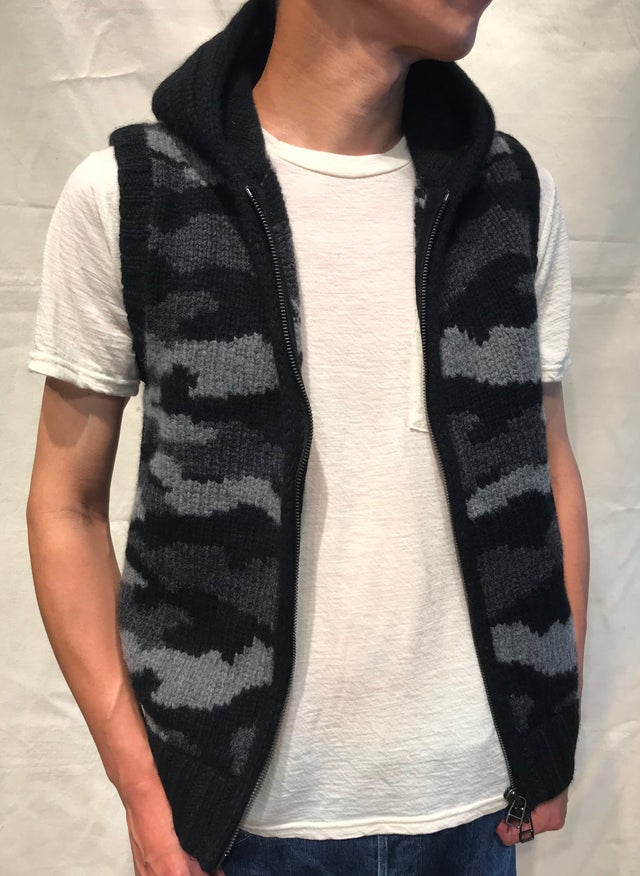 ▼カシミヤ100%手編みセーター(ベストタイプ) カラー:ブラック系