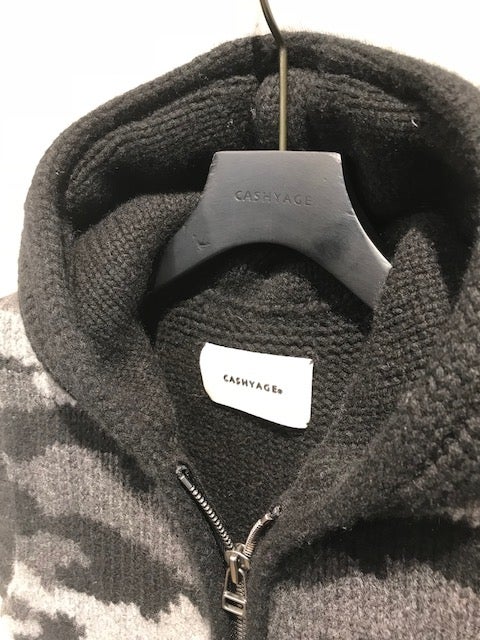 カシミヤ100%では珍しい手編みでのカウチンタイプセーターです。