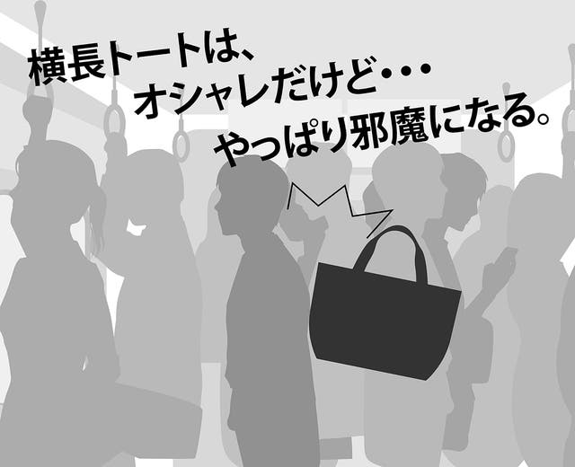 例えば、電車に座った時など隣の人にバッグが触れて気まずい思いをした経験はありませんか。Smartトートならば、一人分のシートにスッポリ収まるスマートデザインです。