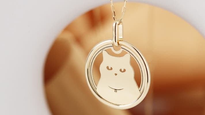 鏡面仕上げの美しい輝きと、絶妙なゆるさが愛らしい猫モチーフのペンダントです。上品で華やかな光を纏う18金ならではのゴールドの輝きが確かな存在感を放ち、遊び心と上質感を同時に楽しめる、可愛さだけではない本格派ジュエリーに仕上げました。