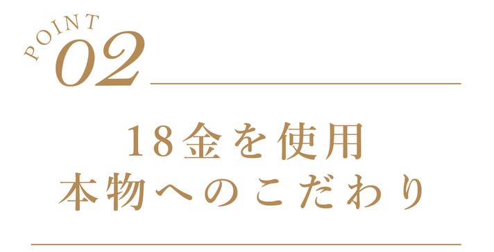 18金は、耐久性と柔軟性に優れ、長く美しい輝きを保つ特性を持っています。その輝きは決して色褪せることがなく、本物の素材だからこそ、一生ものとして愛用できる確かなクオリティを実現しました。