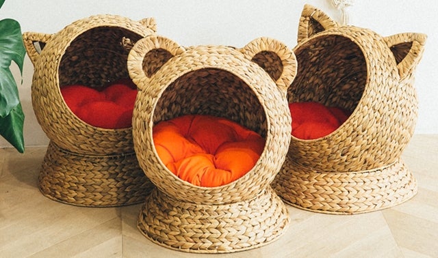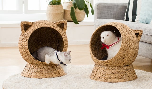 猫たちのための製品であると同時に、人のための製品でもあります。ウォーターヒヤシンスは自然素材なので緑の植物、茶色の葦などと良く合い、ベージュやモノトーンなどにもマッチし、家の中のどこに置いてもインテリアを一層輝かせます。