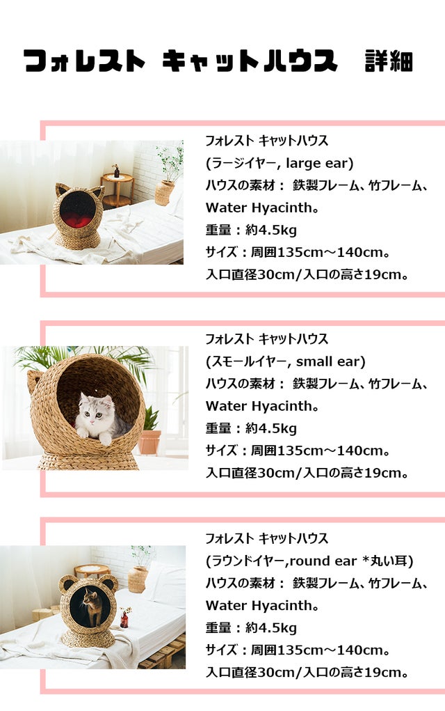 構成 : フォレスト キャットハウス(ラージイヤー) x 1 + フォレスト キャットハウス(スモールイヤー) x 1 + フォレスト キャットハウス(丸い耳) x 1