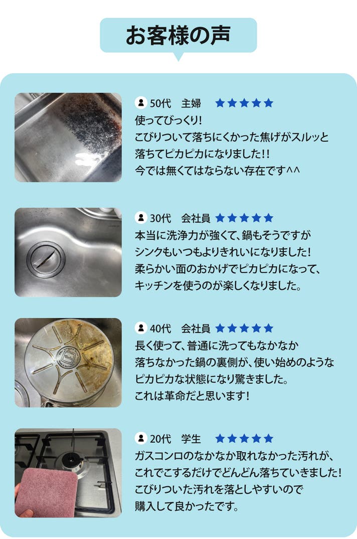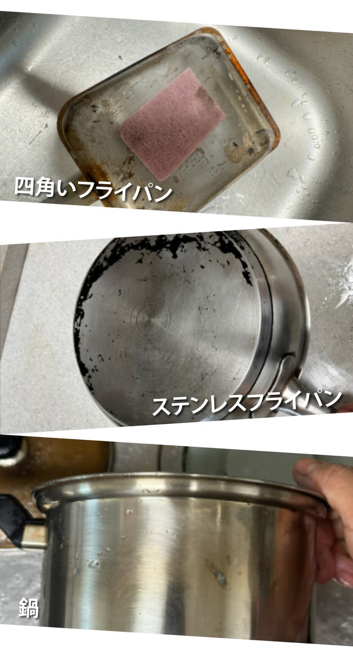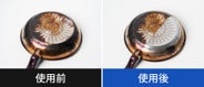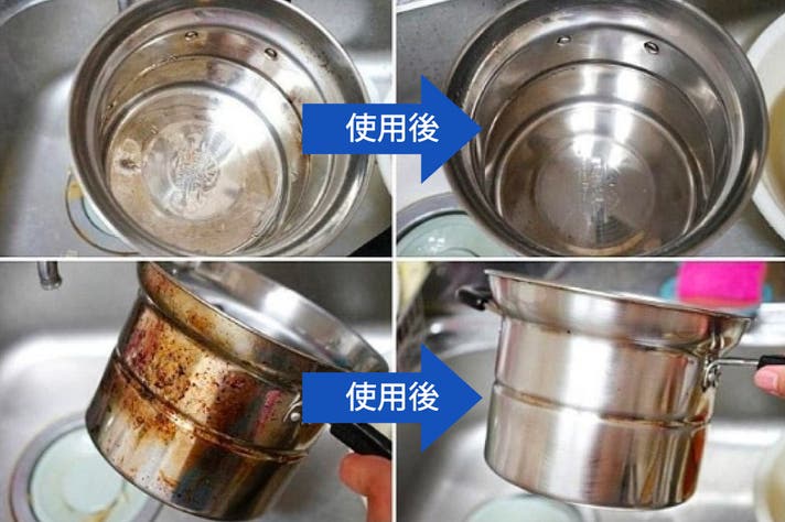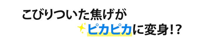 - こするだけで焦げも黒ずみもキレイに落とす!ピカピカによみがえる感動体験!