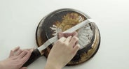 長期間使用し汚れがこびりつきなかなか落ちない焦げや汚れも、焦げ落としクリーナーを使えばこするだけでどんどん汚れが落ちていきます。 洗浄していない部分と比べると、洗浄したフライパンの裏側はきれいに汚れが落ちていることが分かります。