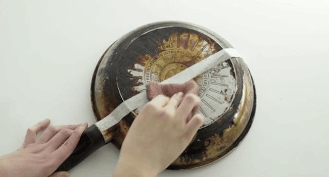 使用済みの鍋やフライパンに、少量の食用油をつけて拭き取ってください。または、重曹水を使って拭き取ってください。除菌のために、仕上げにお酢を使ってもう一度拭き取った後、食器用洗剤で仕上げてください。