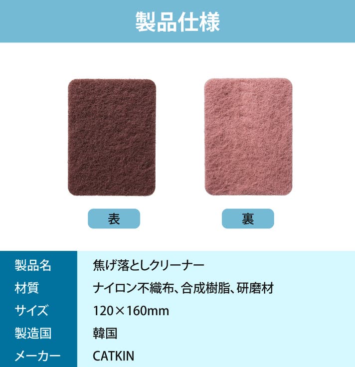 焦げ落としクリーナーは表と裏では仕様が異なります。 表は洗浄用の研磨石を使用しており、裏は光沢ができるように仕上げています。