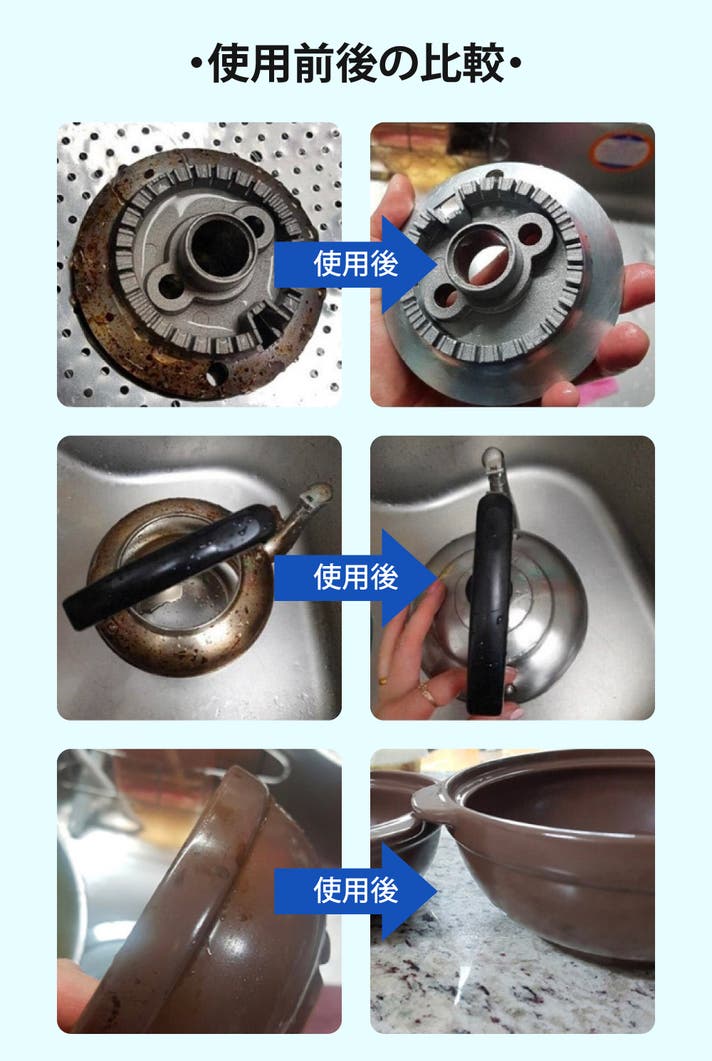 この商品を輸入しようと思った理由:鍋やフライパンは長期間使用するもので、どんどん焦げや汚れが重なり取れにくくなります。そんなこびりついた汚れを一気に落とせる優れた焦げ落としクリーナーが一家に1つでもあれば、より長期間にわたり綺麗に使用できるのではないかと思い、今回プロジェクトを行うこととなりました。