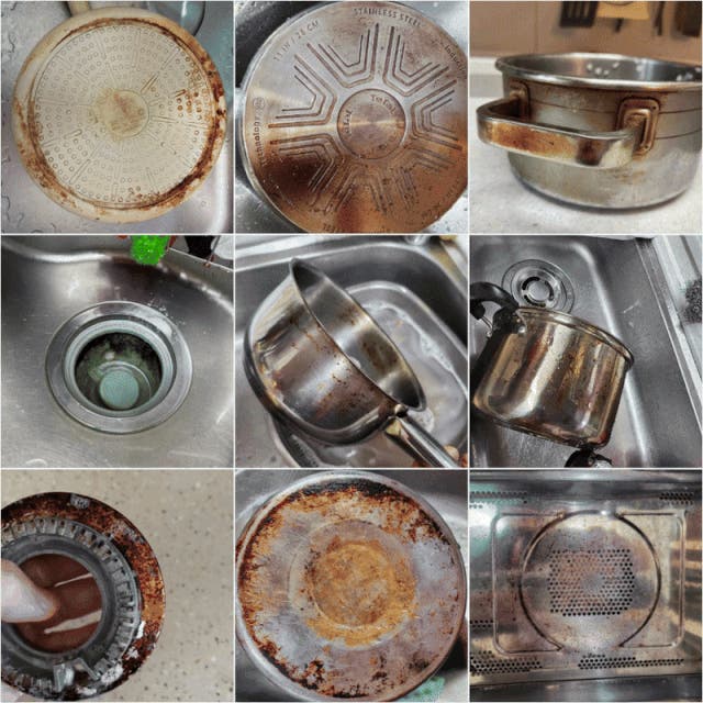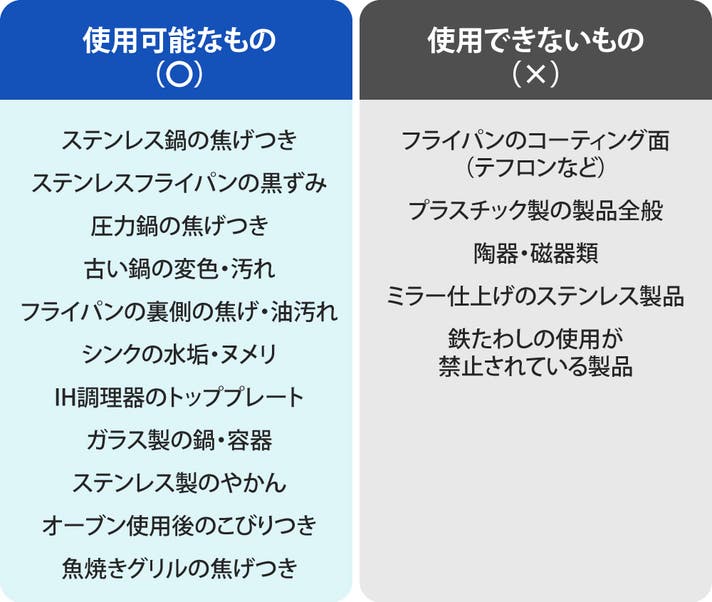 この焦げ落としクリーナーを使用できるものが多く、様々なキッチン道具のこびりついた焦げや汚れを落としてくれます!