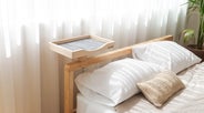A. 取り付けはとても簡単で、壁や家具に穴をあける必要もありません。5.2CMの厚みまで挟みこめる取り付け金具で簡単に固定ができます。挟んで固定する金具部分には、付属の不織布を貼り付けて、家具を傷つけないようにできます。テーブル部分の向きが決まったら付属の六角レンチでテーブルの向きをしっかり固定してください。