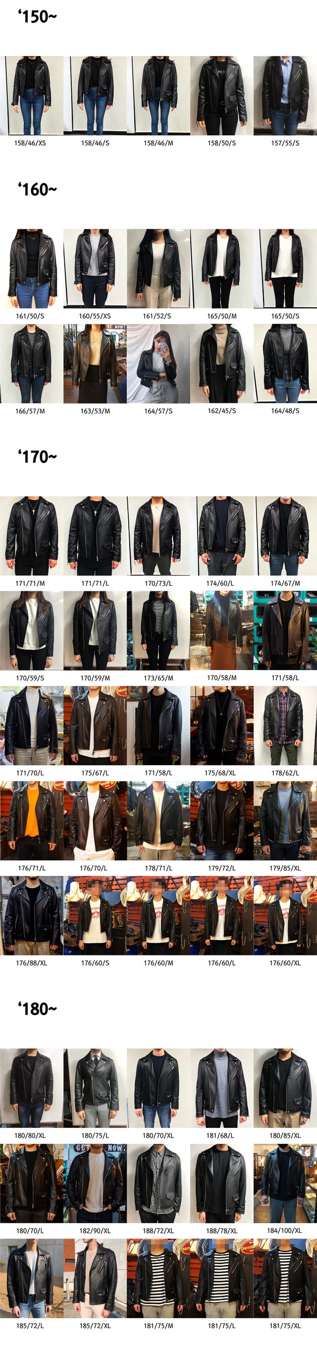 ダブルライダースジャケット詳細サイズ