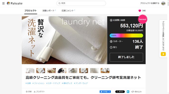昨年、初めて挑戦したMAKUAKEでご好評いただいた「贅沢な洗濯ネット」