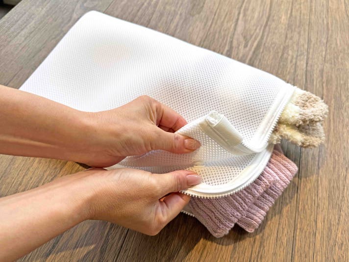 クッション性に優れており、毛玉ができる原因の1つである洗濯中の摩擦から衣類を守ります