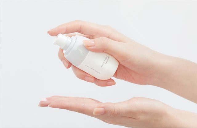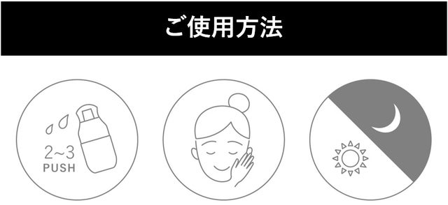 ①お手持ちの化粧水でお肌を整えたあと、2~3プッシュ手に取ってください。